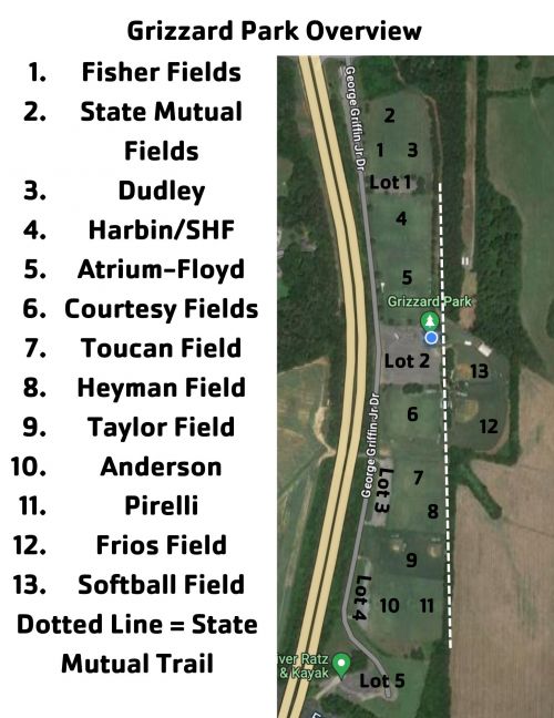 Games are played in the following fields. Our staff will be identified by the coaching staff shirts. Please feel free to seek their assistance as needed. We look forward to seeing you at Grizzard Park!